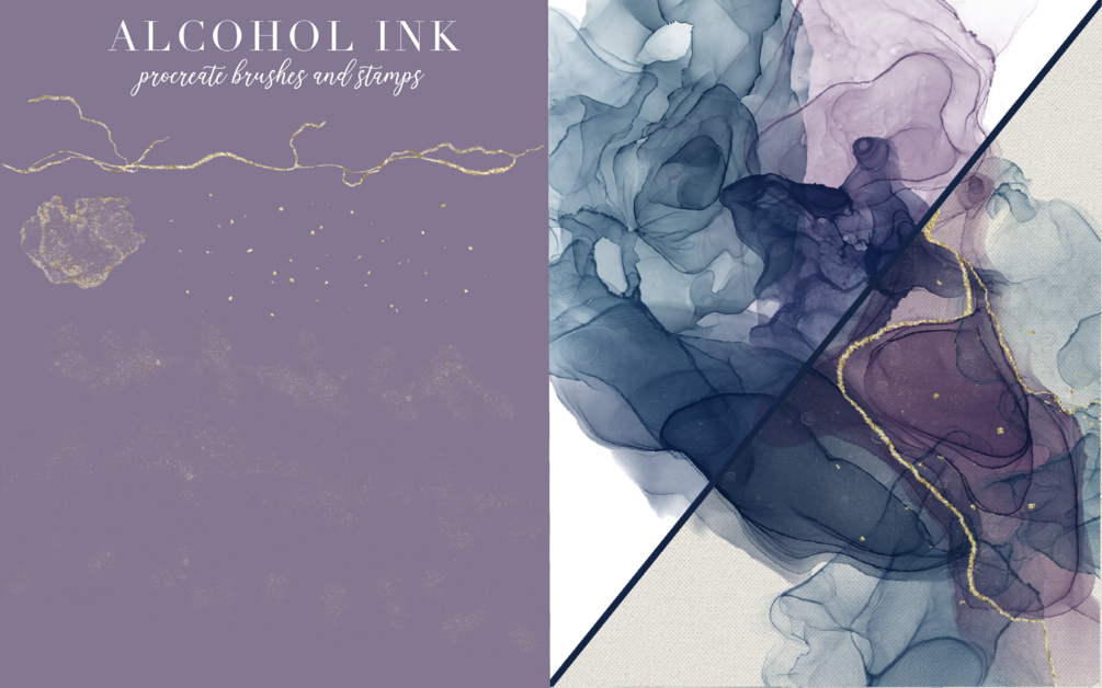 Please note: the brushsets were too large for the Etsy upload limit due to the high resolution of the scanned alcohol ink images, so you’ll find a PDF with the links to download the brushes upon purchasing.