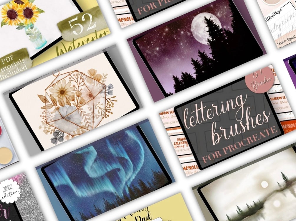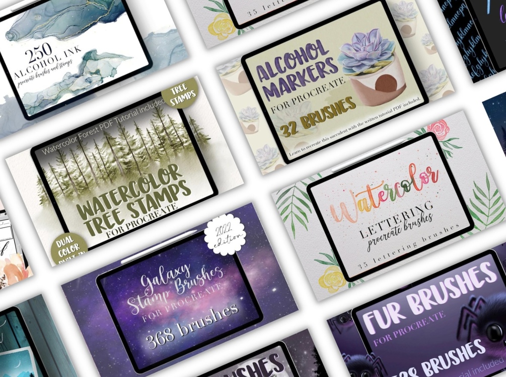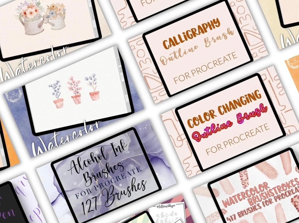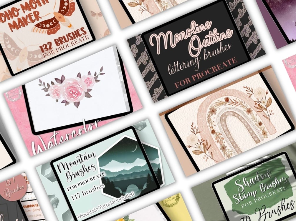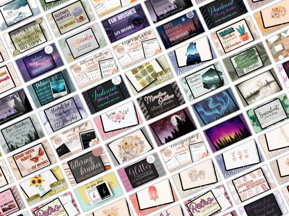 Please note: the Procreate brush sets were too large for the Etsy upload limit due to the amount of brushsets and files included, so you’ll find a PDF with the links to download the Procreate bundle upon purchasing.